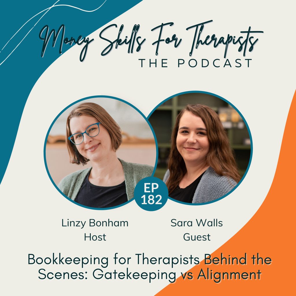 Exactly. Yes. Welcome to Money Skills for Therapists, the podcast that helps therapists and health practitioners in private practice go from money confusion and shame to calm clarity and confidence with their finances. If you’ve ever felt overwhelmed by numbers or avoided looking at your business money, you’re in the right place. Hi, I’m Linzy Bonham, therapist turned money coach and creator of Money Skills for Therapists. Before we jump in, check out my free On Demand masterclass. You’ll find the link in the show notes or@moneynutsandbolts.com under masterclass. It’s the best first step to finally feeling empowered with money in your private practice. Let’s get started. Hello and welcome back to the podcast. Today’s guest is Sara Walls. Sara Walls is a therapist and bookkeeper for therapists. She’s also a graduate of Money Skills for Therapists. So I had the pleasure of working with her a couple years ago, and since our work together, she has started doing this bookkeeping work for therapists, which is so exciting. So it’s so exciting to be able to have her on the podcast today and for me to hear more about what she’s built and the continued work that she’s done growing her financial skills since I last got to work with her. Today, Sara and I talk about her own journey of going from a therapist who was avoidant of money and overwhelmed and even ended up having to shut down her first version of her private practice because the money wasn’t working. Going from that to now. Being a bookkeeper for therapists, we talk about gatekeeping in the bookkeeping world and dig a little bit more into some of the dynamics in bookkeeping that can sometimes lead folks to maybe be a little bit defensive. We talk a little bit about experiencing some defensiveness and some gatekeeping from the financial world, but specifically talking about bookkeepers and some of the parallels between bookkeepers and how their work is valued and compensated and therapists and counselors and how our Work is also not always valued or well compensated. A disclaimer on this. We are talking about kind of like the, you know, a little bit of the. Maybe the dirt, the grist in the bookkeeping world. So if you’ve had an experience with a bookkeeper where bookkeepers have ever been defensive or kind of gatekeeping, not letting you really understand your numbers, we dig a little bit into some of the context that might inform those experiences. But also, of course, huge disclaimer. Many bookkeepers are not defensive and are lovely and willing to answer your questions. And that’s something for you to look for as you’re looking for financial professionals in general is people who are able to answer your questions clearly, be with you in your numbers, give you the communication that you need. So there are many great bookkeepers and accountants out there like that, Sara being one of them. But we dig into some of the context around bookkeeping and why sometimes bookkeepers, you know, it might be hard to be a bookkeeper sometimes. We also talk about what are some of the financial habits that therapists and health practitioners in private practice can develop and specifically how to make yourself work on your money if you have ADHD or are neurodivergent. So Sara herself shares a little bit about her experience and her learning from other people in the ADHD space and how that applies to money. Lots of great things that we covered today. Here is my conversation with Sara Wall. So, Sara, welcome to the podcast.
